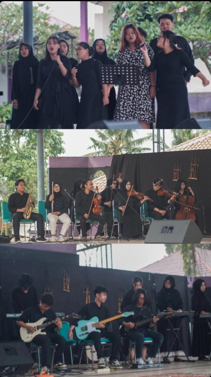 Mahasiswa Program Studi Pendidikan Musik Universitas Lampung sukses menggelar Pertunjukan Ansambel Musik Sekolah, sebuah kegiatan yang menjadi puncak pembelajaran praktis dari mata kuliah Ansambel Musik Sekolah. Acara ini menampilkan kreativitas dan kolaborasi mahasiswa dalam menyajikan berbagai repertoar dengan format ansambel yang dirancang layaknya pembelajaran musik di sekolah. Dalam pertunjukan tersebut, mahasiswa memainkan beragam instrumen sederhana seperti pianika, recorder, gitar, angklung, dan perkusi ritmis yang diaransemen secara menarik sehingga menghasilkan harmoni yang segar dan edukatif. Selain menjadi ajang unjuk kemampuan bermusik, kegiatan ini juga melatih mahasiswa dalam mengelola pertunjukan secara profesional, mulai dari perencanaan, pengorganisasian, hingga penyajian di panggung. Melalui kegiatan ini, mahasiswa tidak hanya memperlihatkan penguasaan musikal dan kreativitas, tetapi juga membuktikan bahwa musik sekolah dapat dikemas secara modern, menyenangkan, dan sarat nilai edukatif bagi generasi muda.
